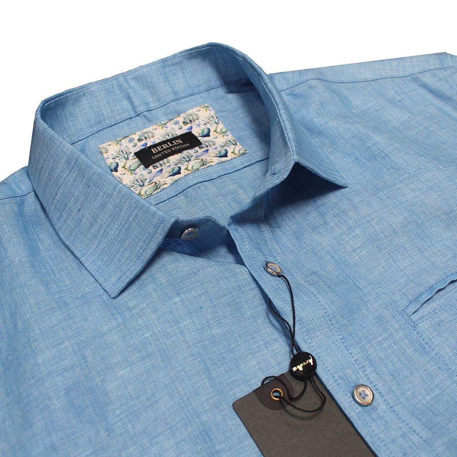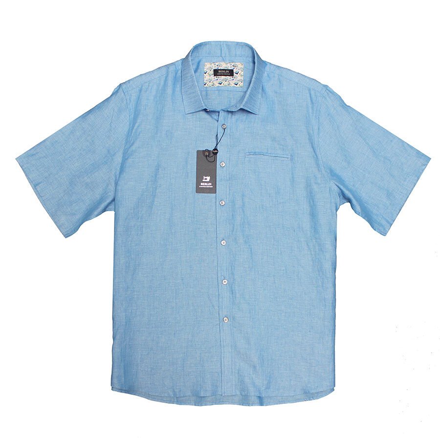 BERLIN - Mid Blue Irish Linen SS Shirt - Berlin clothing offers big men the latest style options in top quality fabrics - Berlin S25