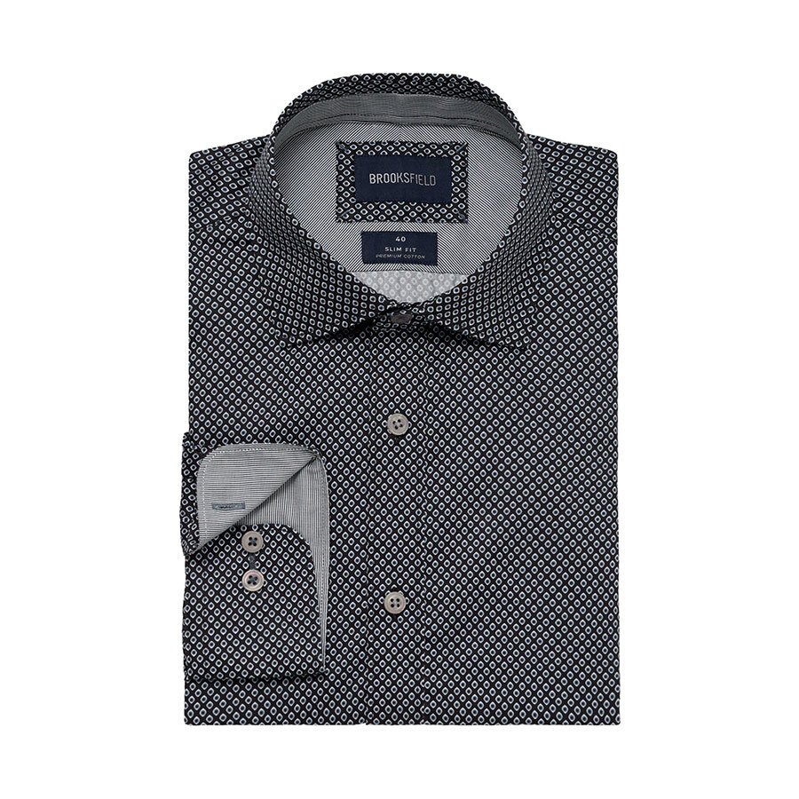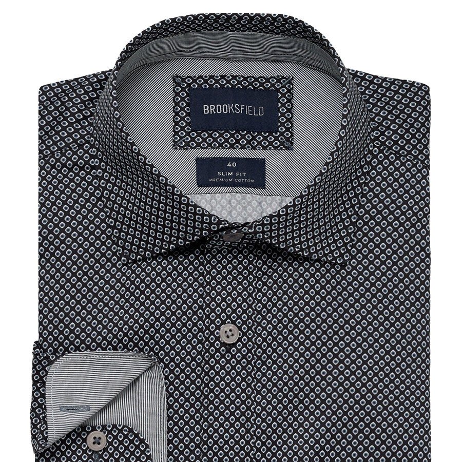 BROOKSFIELD - Luxe Printed Shirt Black - Beggs offers NZ best selection of Brooksfield Business shirts for big men - Brooksfield W26
