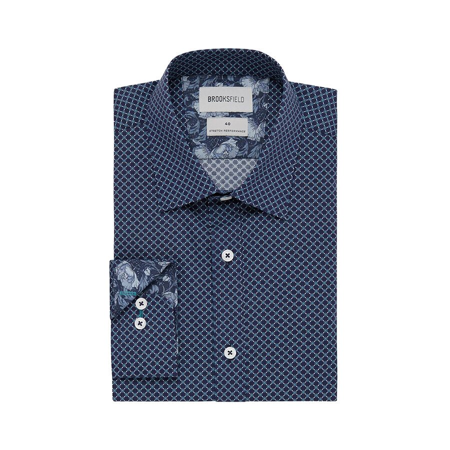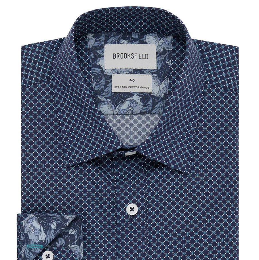 BROOKSFIELD - Stretch Cotton Diamond Pattern Navy - Beggs offers NZ best selection of Brooksfield Business shirts for big men - Brooksfield S25
