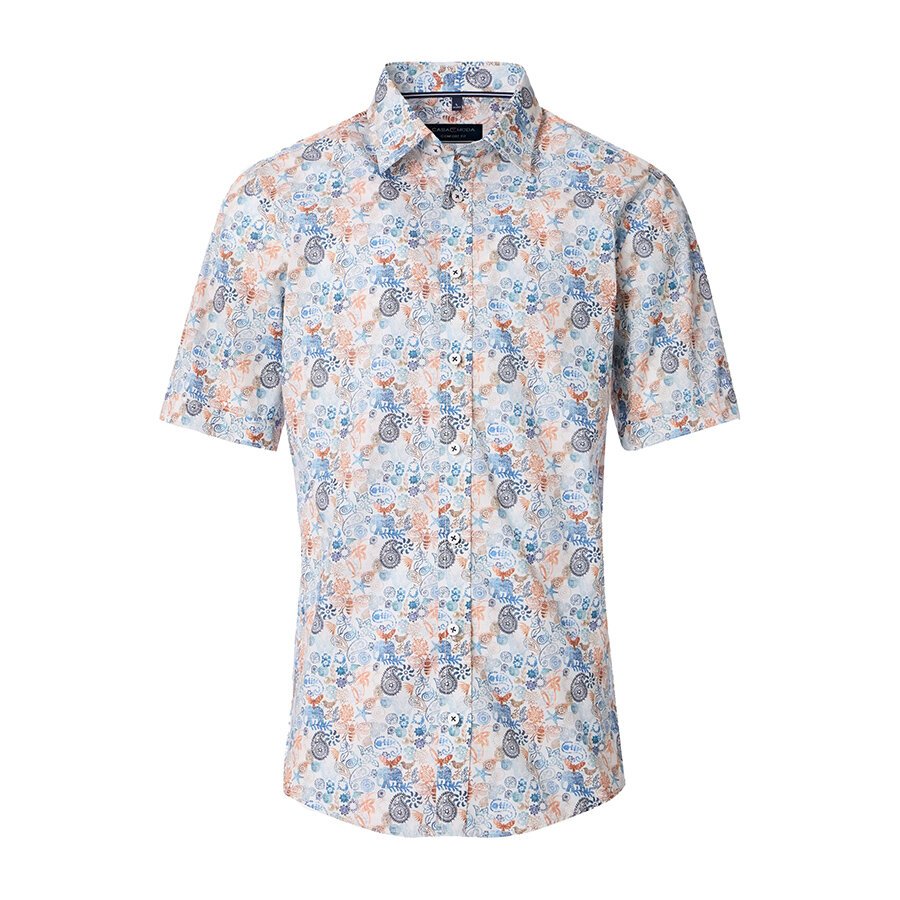 This give you the half chest measurement once you have this, check the size chart and order the size closest to what you measured on your existing shirt.