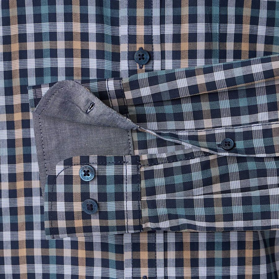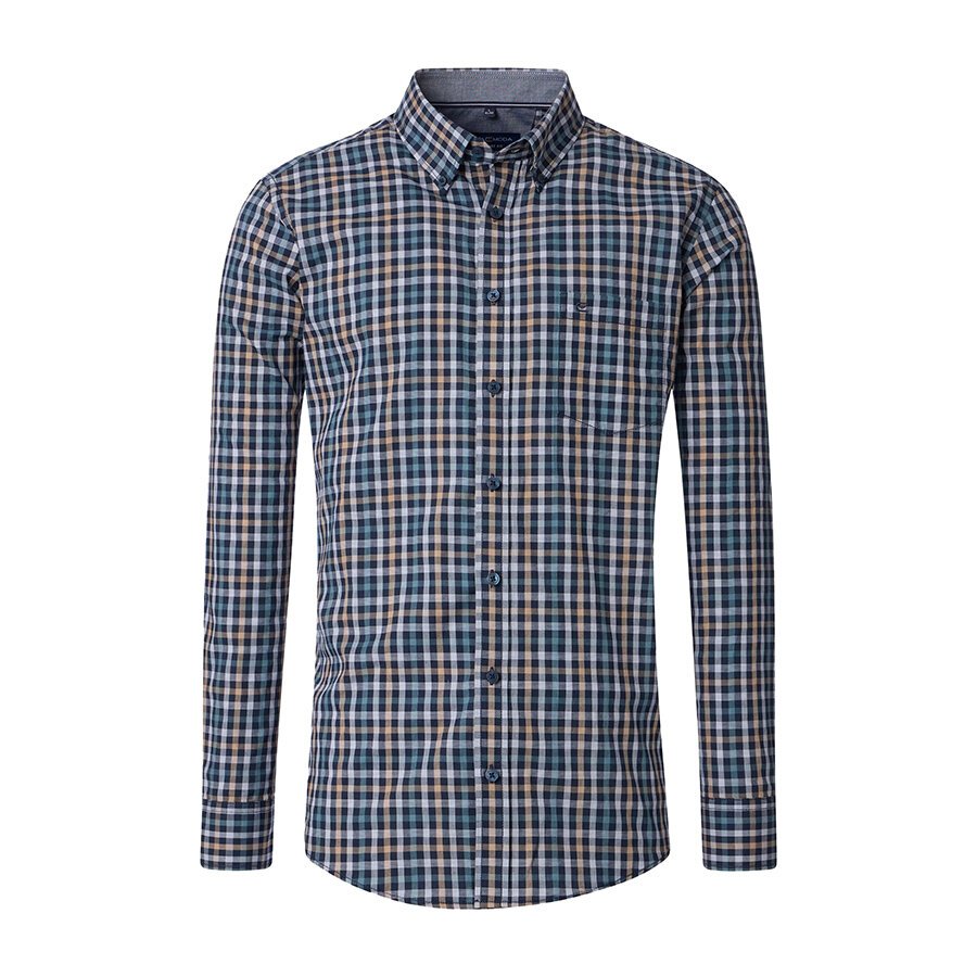 Casa Moda Small Check LS Shirt Blue
