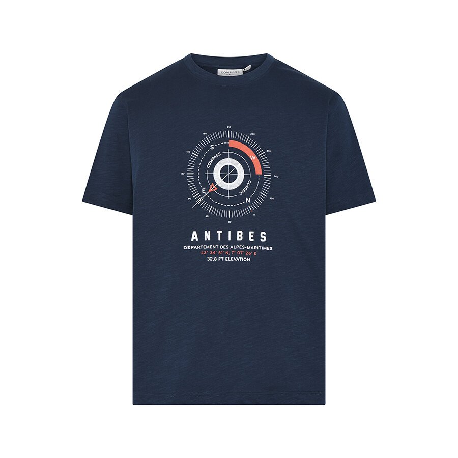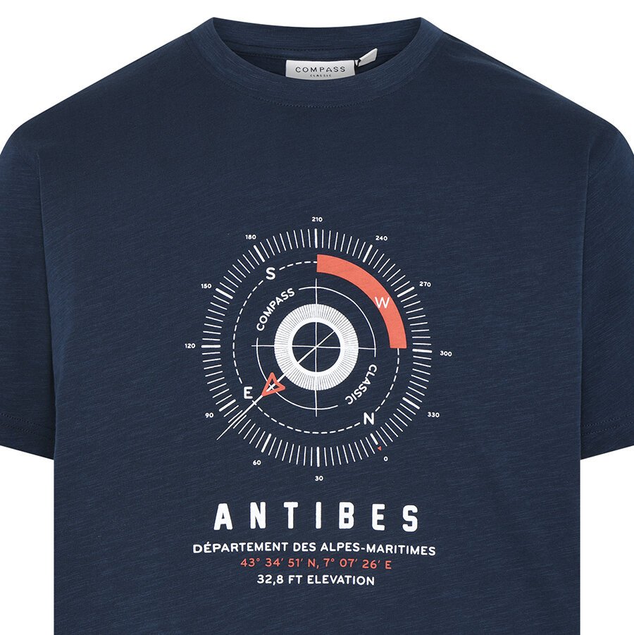 COMPASS - Compass Print Cotton Tee Navy