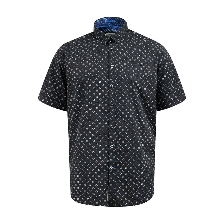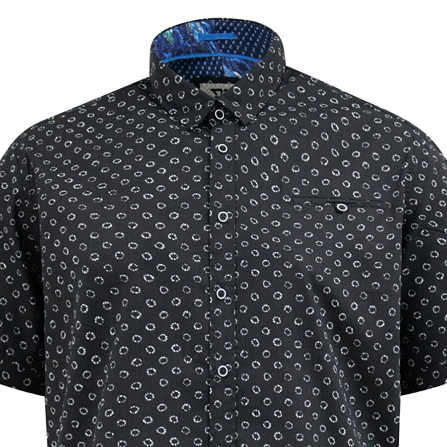 D555 - Matlock Small Print Pattern SS Shirt Black - D555 - Affordable European Fashion for Big Men - Sizing up to 7XL - D555 S25