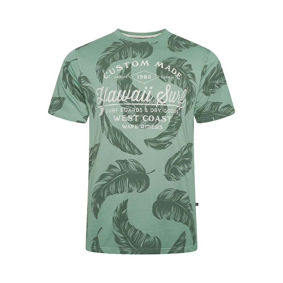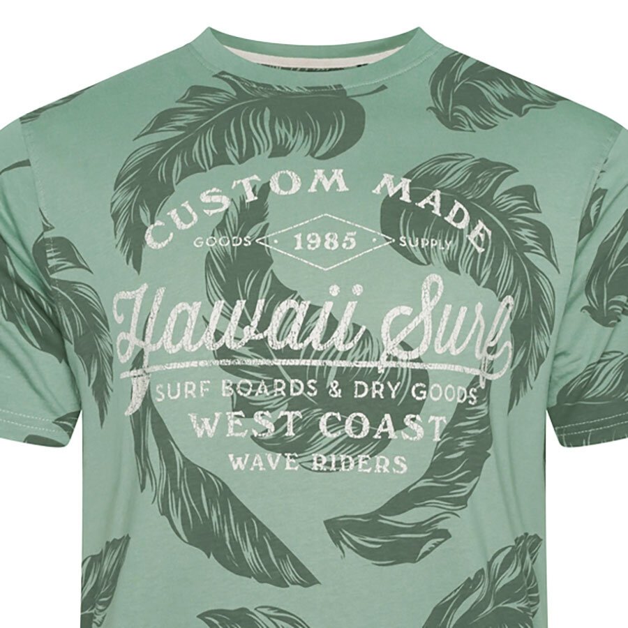 KAM - Hawaii Surf Leaf Print Tee Sage