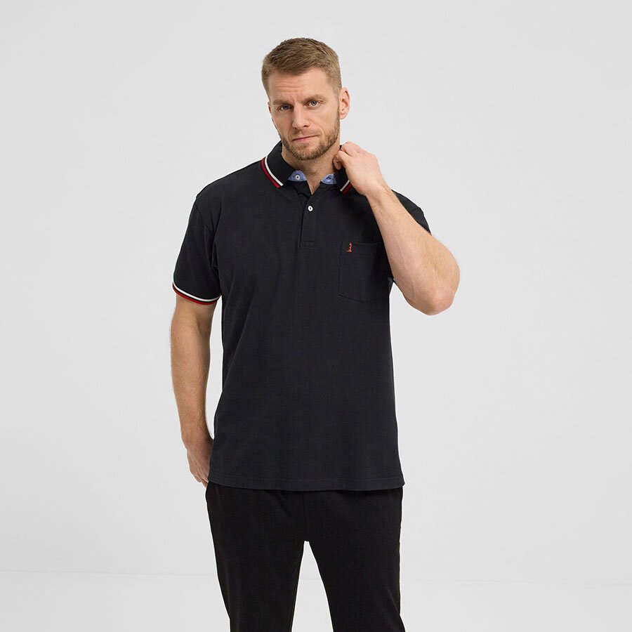 North 56 Contrast Super Stretch Cotton Polo Black - Designed for big men Exclusively at Beggs Wairau - North 56