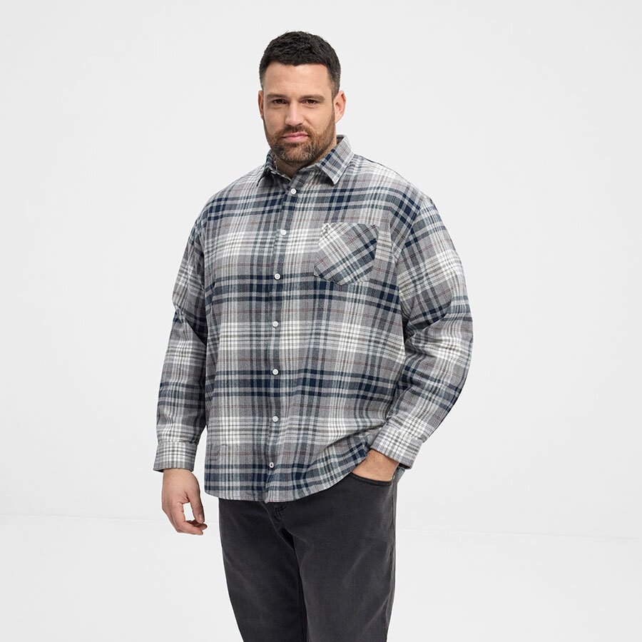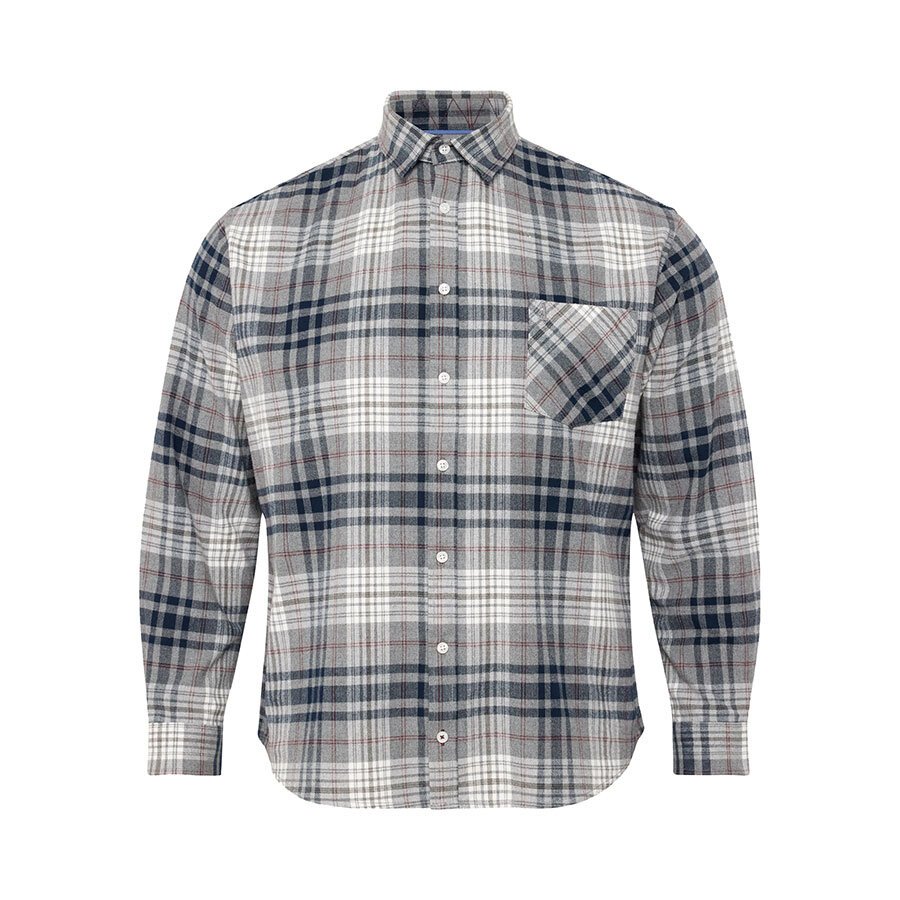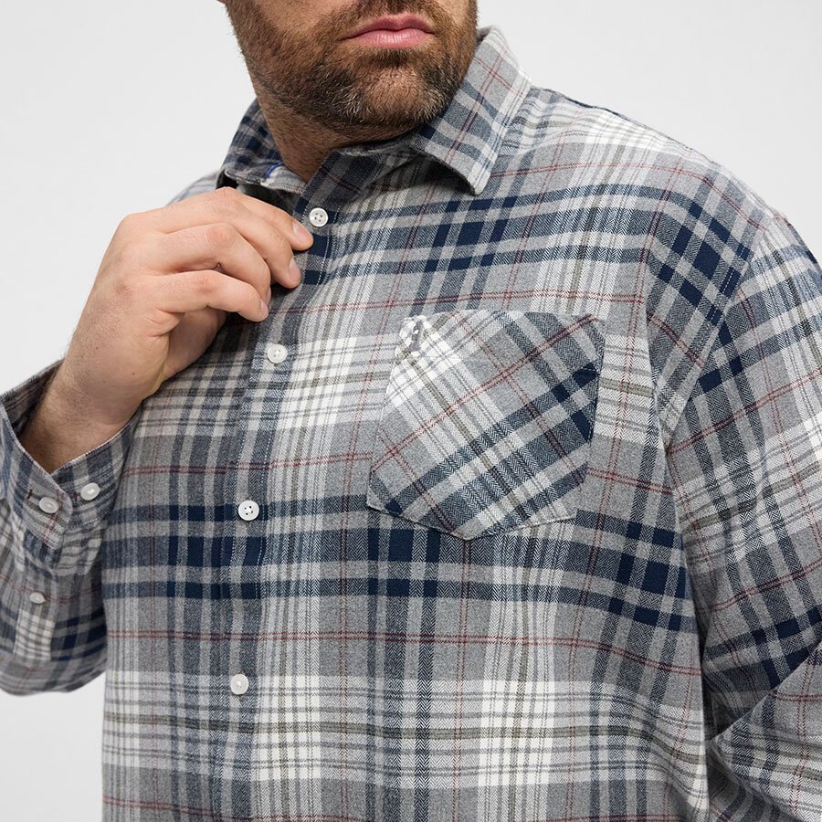 NORTH LATITUDE - Brushed Cotton Check Shirt Grey