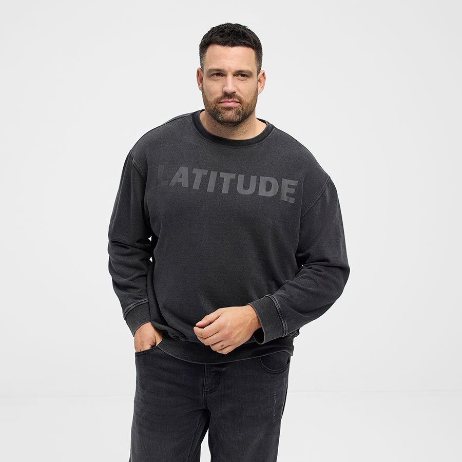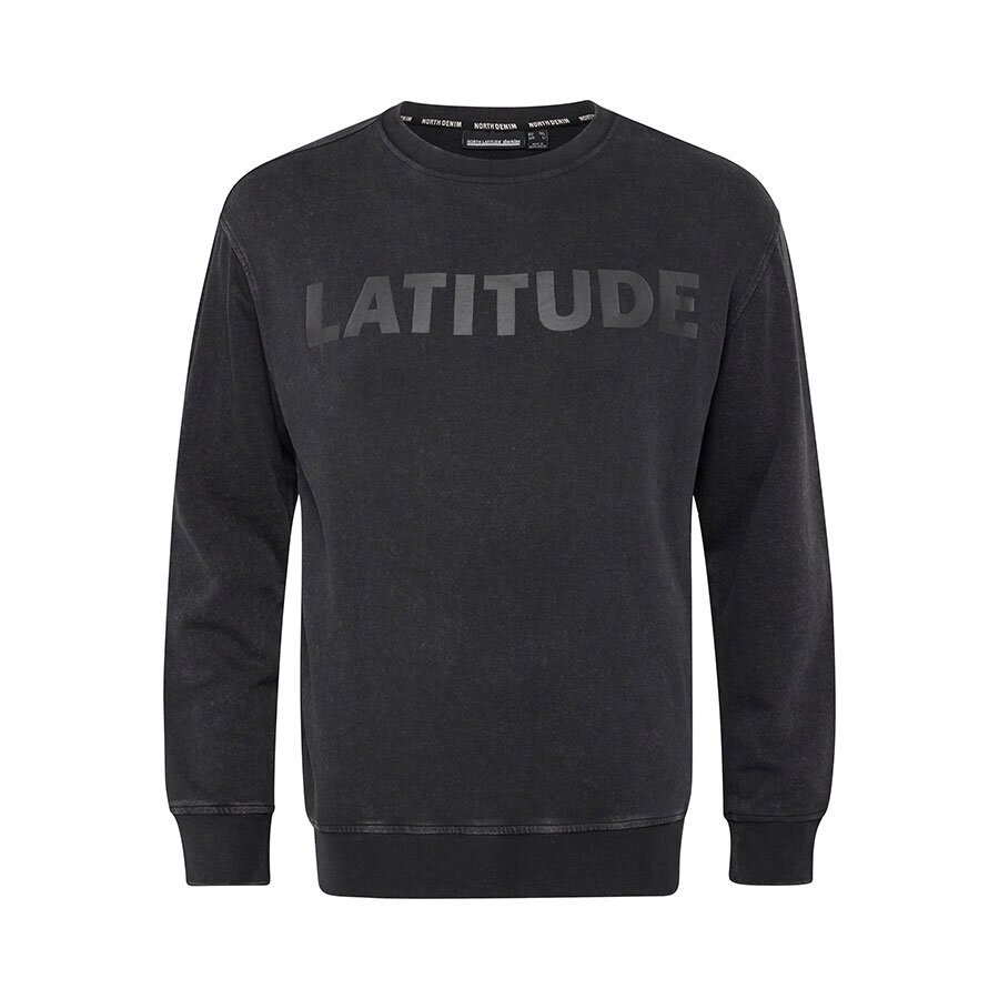 NORTH LATITUDE - Cotton Printed Crew Neck Sweater Black