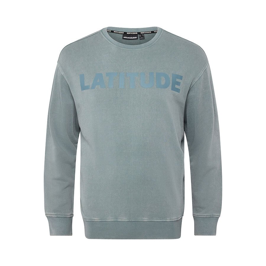 NORTH LATITUDE - Cotton Printed Crew Neck Sweater Pale Mint