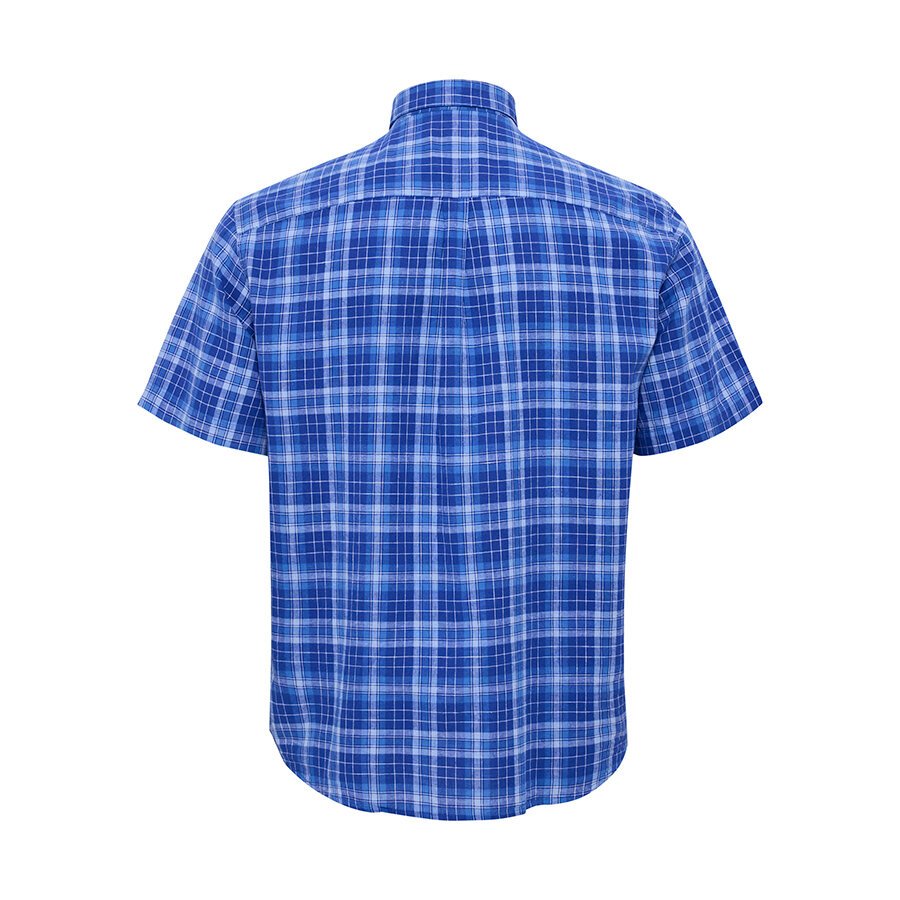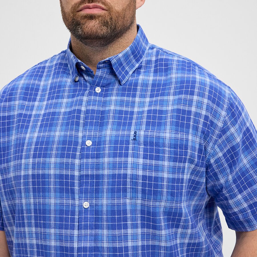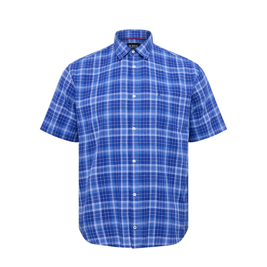 NORTH LATITUDE - Linen Cotton Check Shirt SS Cobolt Blue