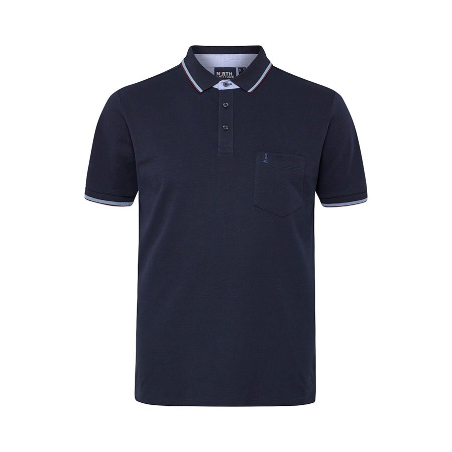 NORTH LATITUDE - Pique Polo Contrast Striped Collar Night Sky