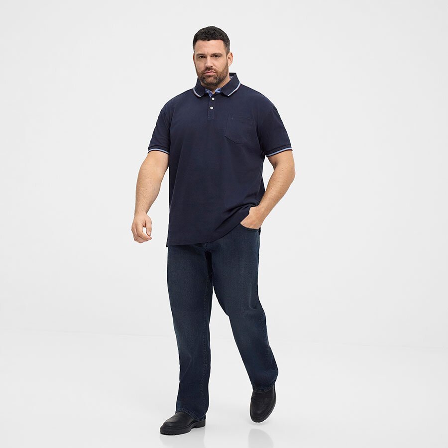 NORTH LATITUDE - Pique Polo Contrast Striped Collar Night Sky - Designed for big men Exclusively at Beggs Wairau - North Latitude W26
