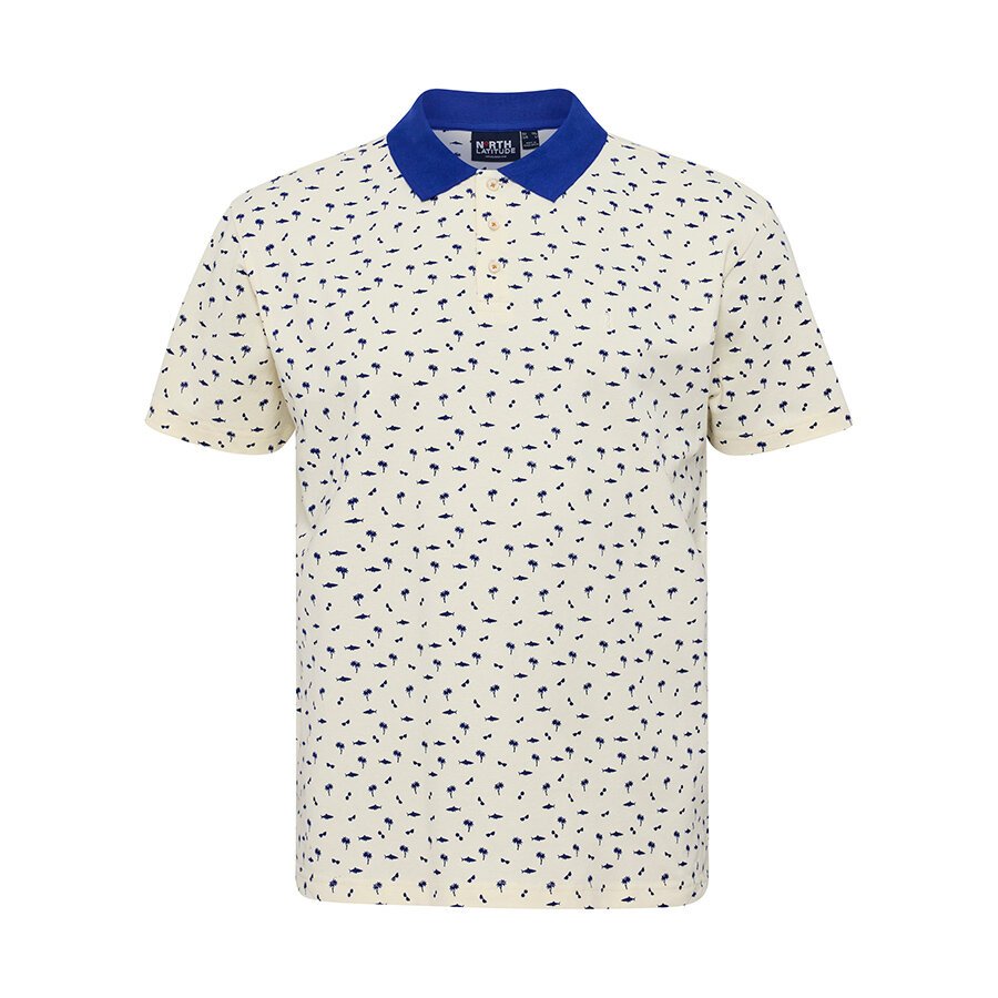 NORTH LATITUDE - Shark Pattern Stretch Cotton Polo Off White